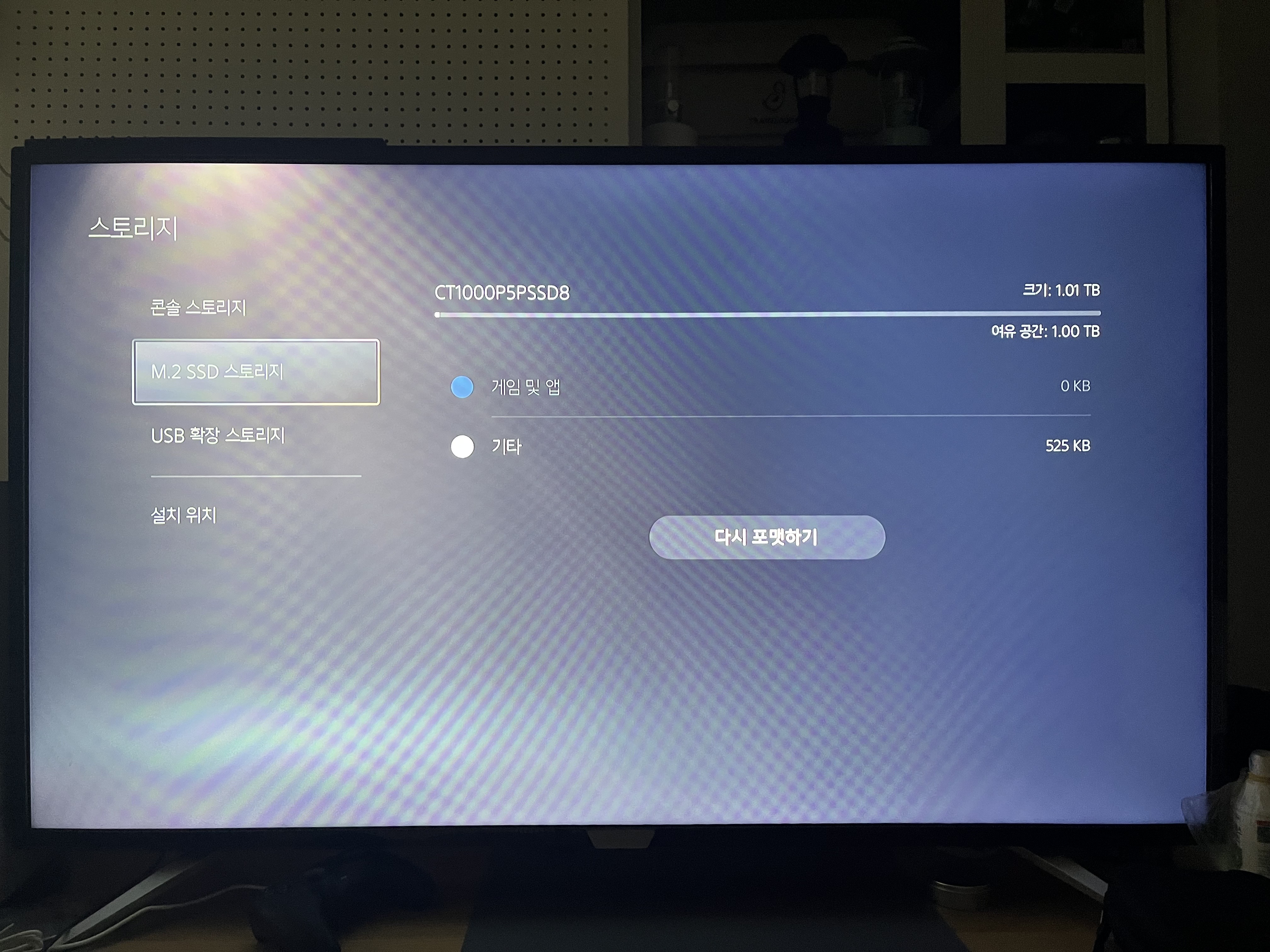 7단계 : 플스5의 게임 및 앱의 스토리지를 새로 장착한 SSD로 설정해 줍니다.