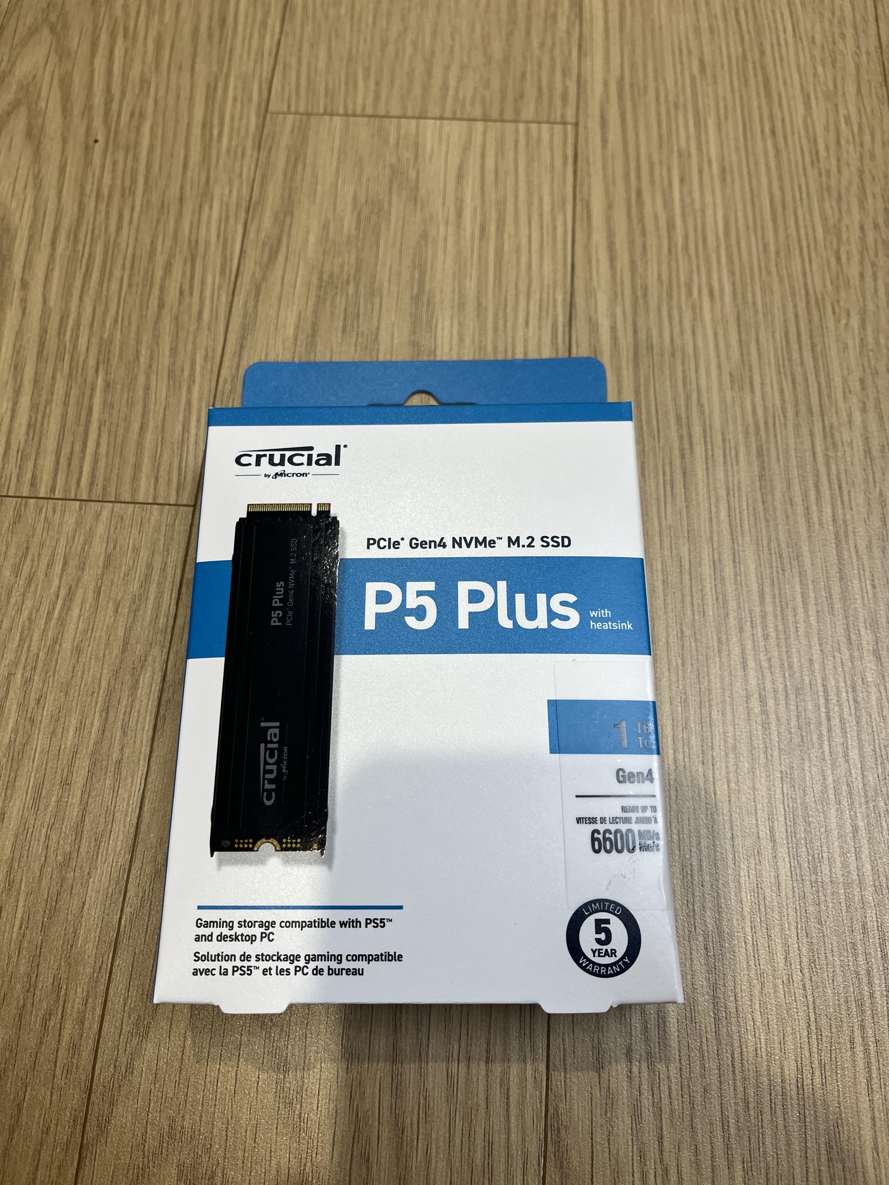 1단계 : 구매한 M.2 SSD를 준비합니다. - 저는 마이크론 Crucial P5 Plus 히트싱크 1TB 제품을 준비 했습니다.